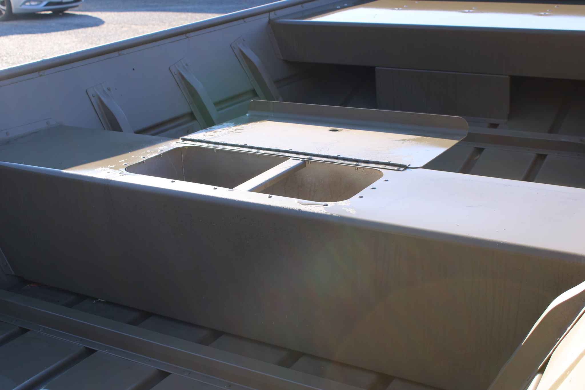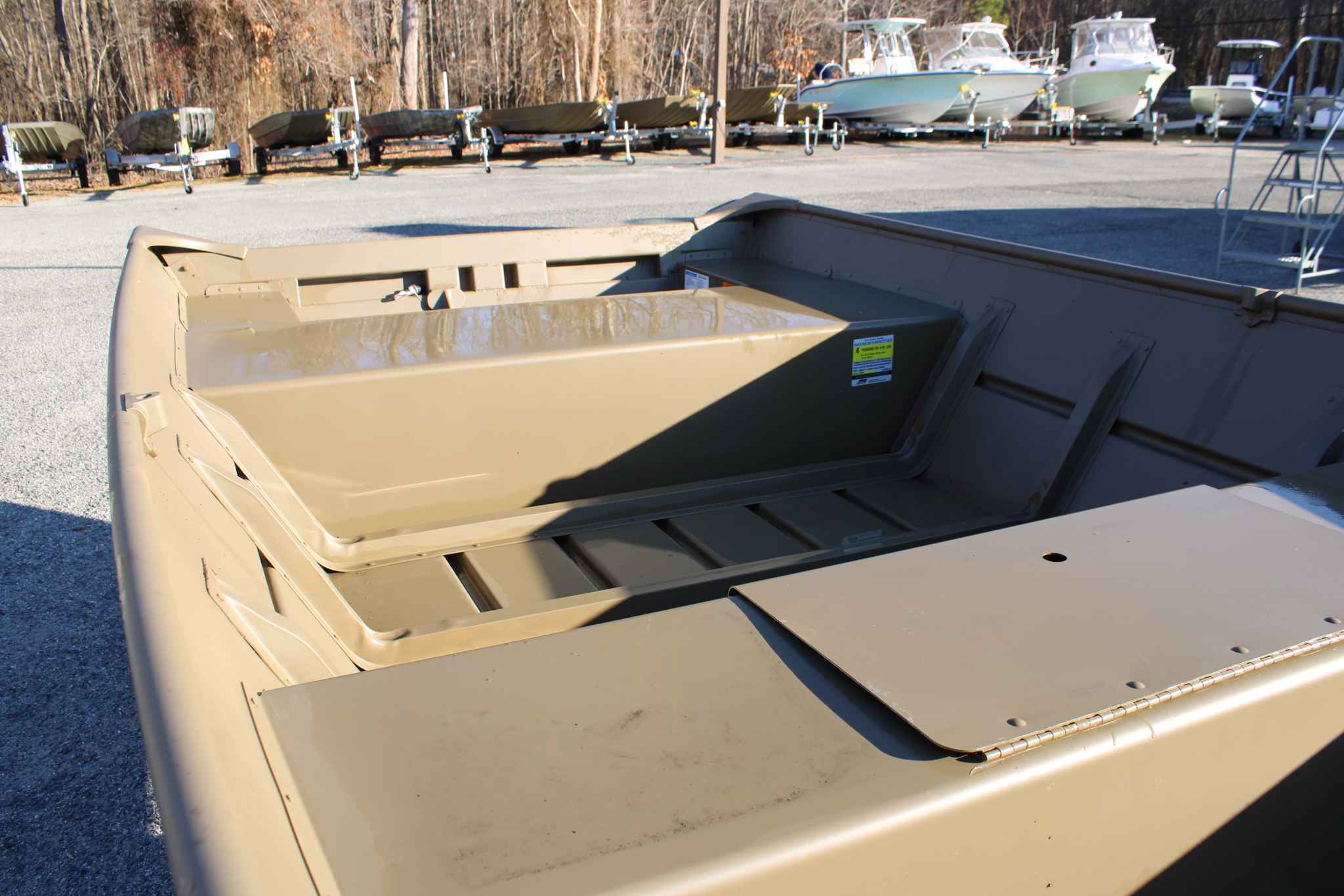 The 1448 LW is built as a basic, lightweight jon boat with a wide beam and good load capacity for its class, designed for fishing, duck hunting, and utility use. It supports up to a 25 HP outboard and a livewell is standard on the LW trim.
