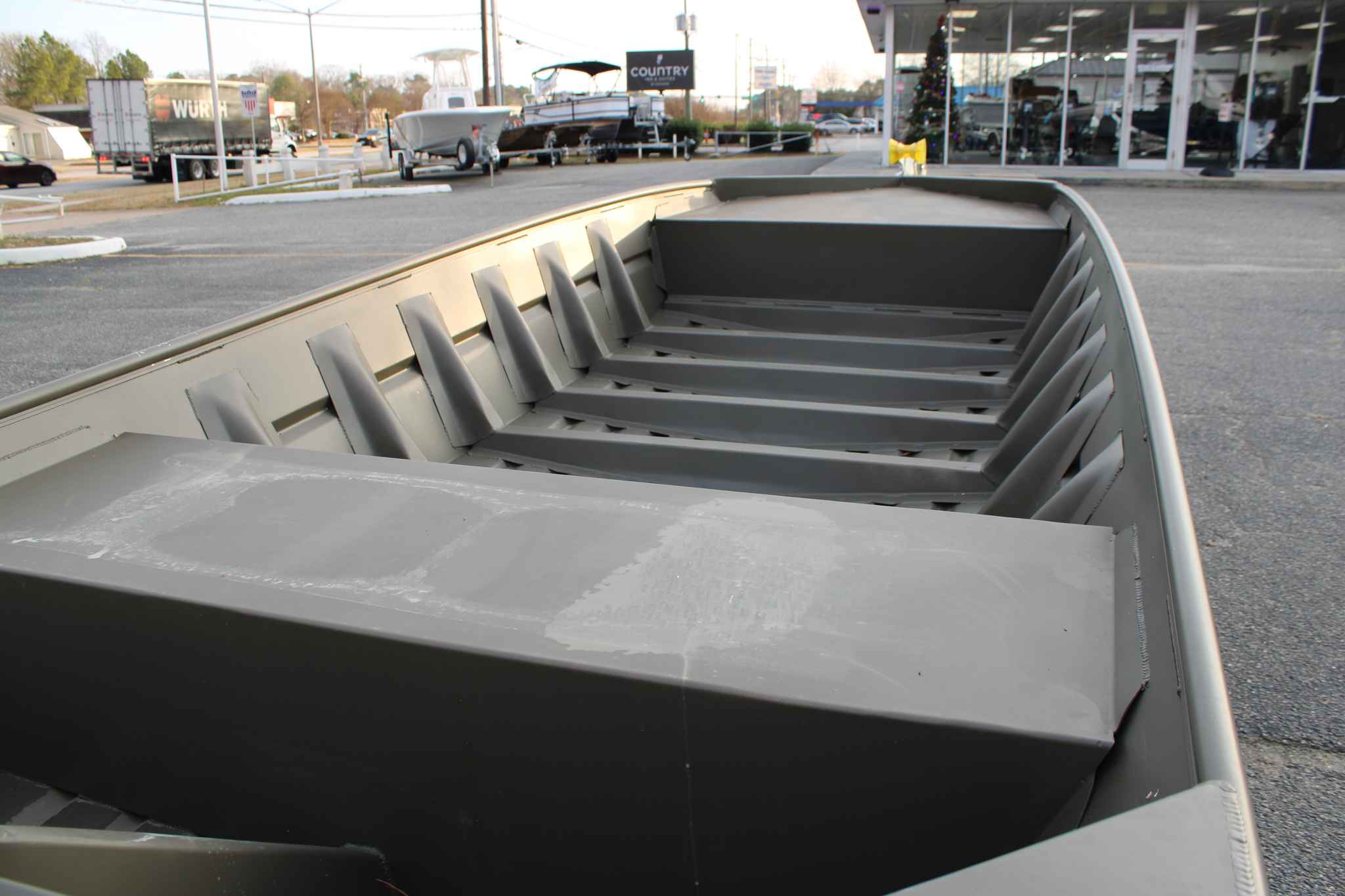 The semi-V hull gives it a smoother, more forgiving ride in light chop compared to a traditional flat-bottom jon, while still keeping draft low and handling predictable. Its open interior layout provides a spacious, unobstructed deck — ideal for customizing with fishing setups, seating, a blind for waterfowl hunting, or additional storage gear.