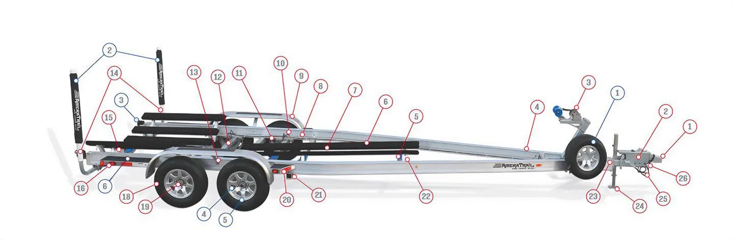 At AmeraTrail, no trailer is “one size fits all.” Every build is designed around your specific boat and tailored to your exact preferences. From frame type to axel configuration to lighting, wheels, steps, and finish options, we offer an unmatched level of customization. The result is a trailer built to perform flawlessly and reflect the same quality and individuality as your boat