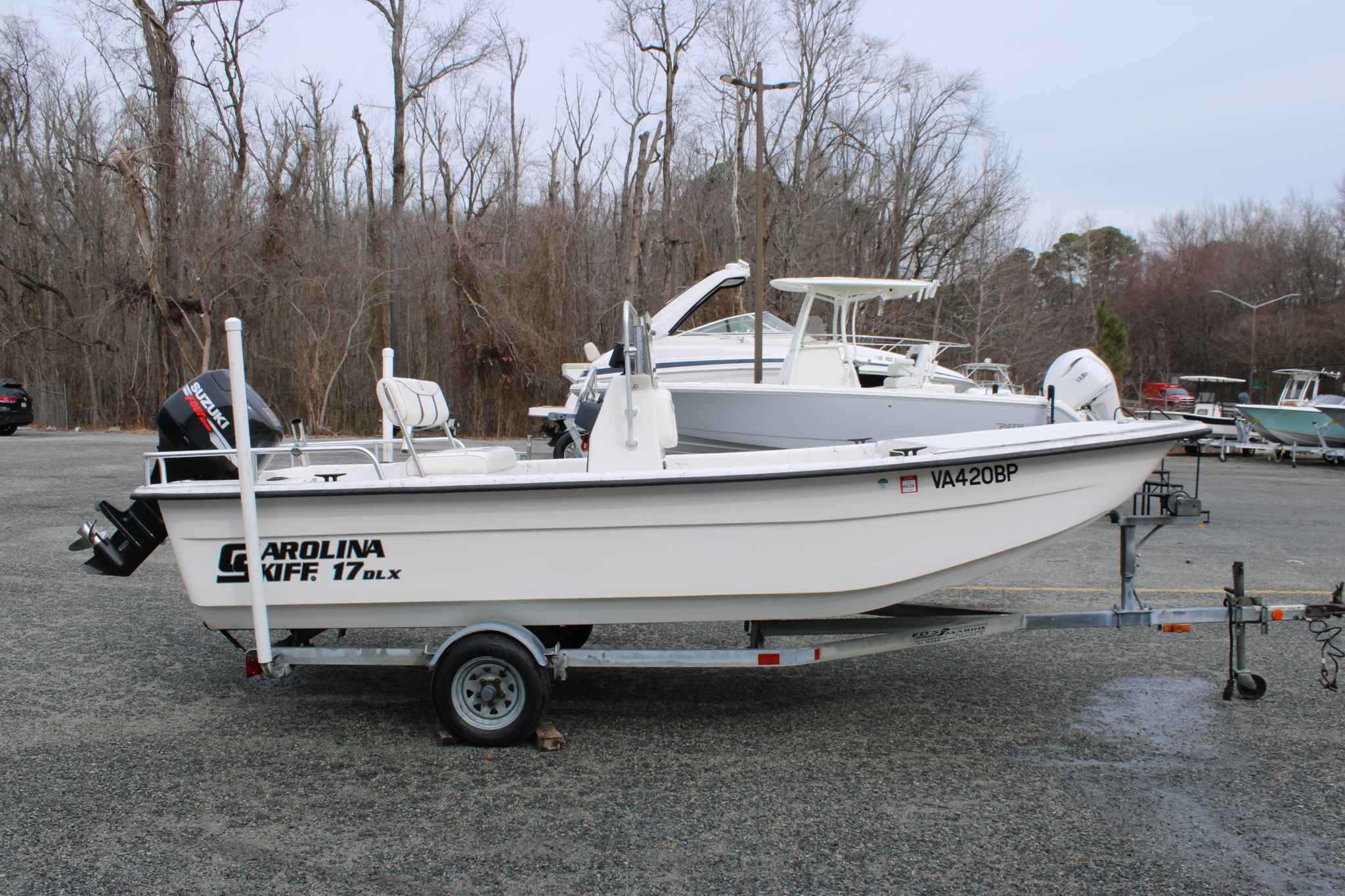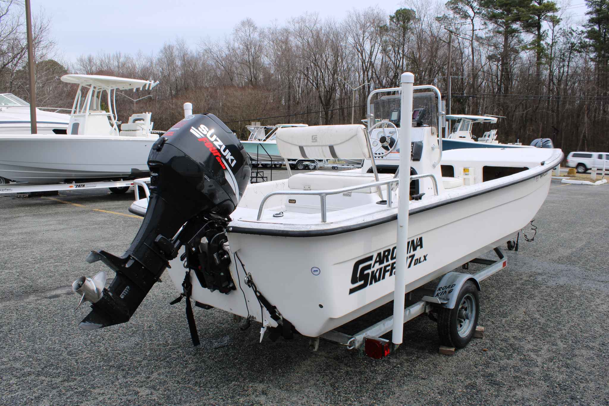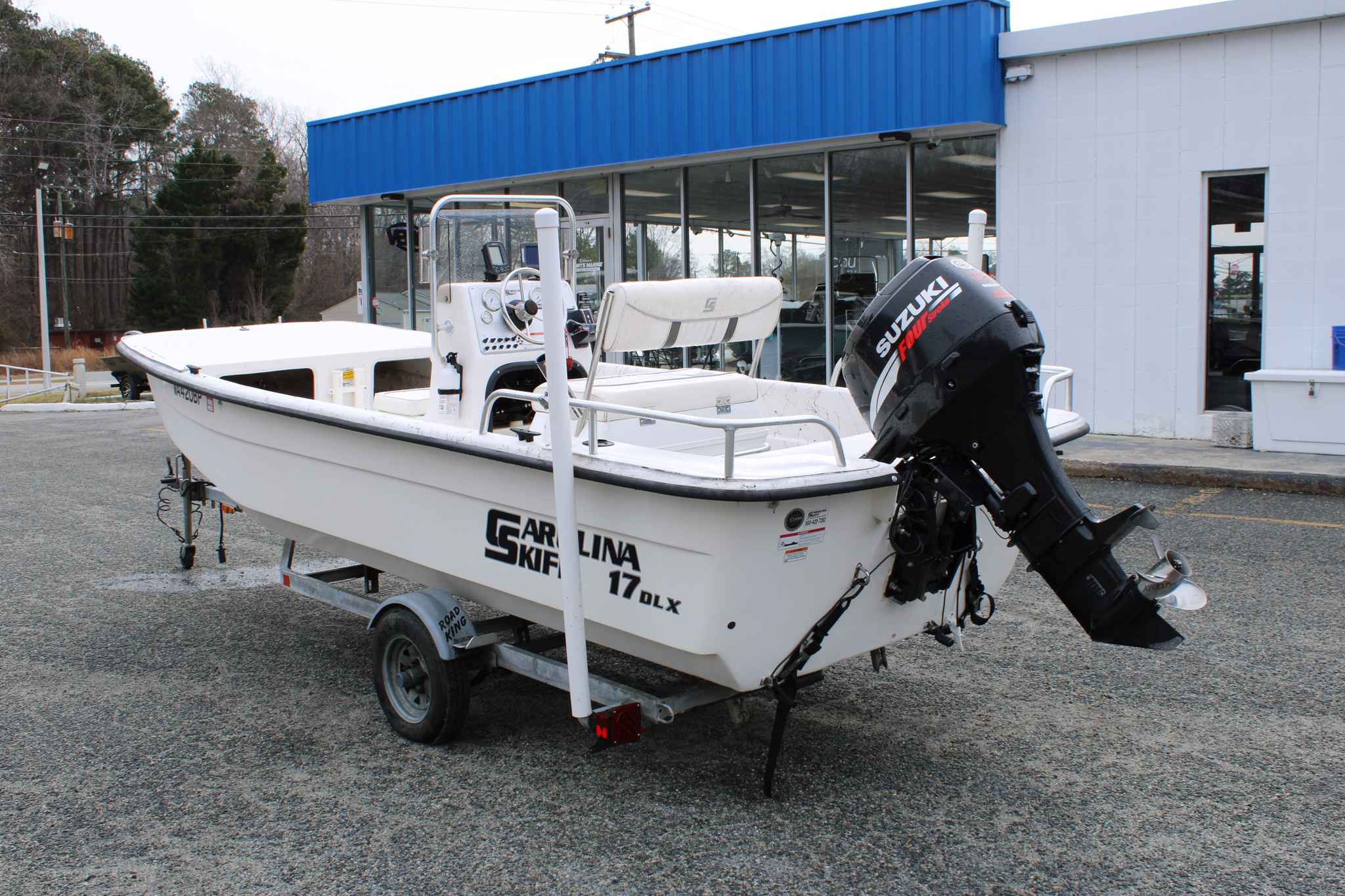 Owners commonly appreciate the 17DLX’s open, uncluttered layout, lightweight fiberglass hull, and capability in shallow water, making it a go-anywhere platform for fishing or cruising. It’s typically paired with a portable fuel tank (around ~10–12 gallons) and a recommended outboard in the 40–60 HP range — exactly where a 50 HP Suzuki fits.