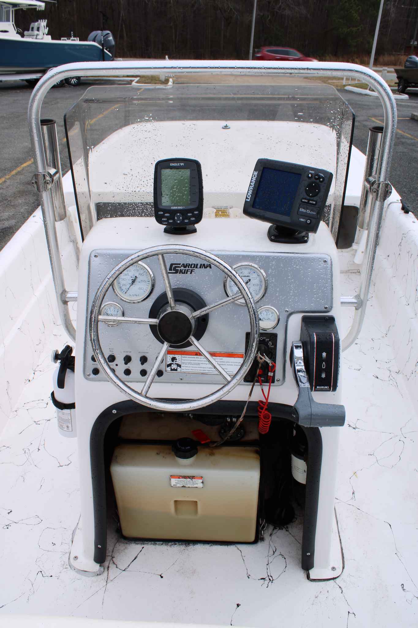 Equipped with a 50 HP Suzuki four-stroke outboard (common configuration for this size boat) that’s seen around ~350 hours, the package balances fuel efficiency, longevity, and performance for most inshore conditions — planing easily, offering respectable cruising speed, and keeping maintenance costs reasonable compared to larger or higher-powered setups.